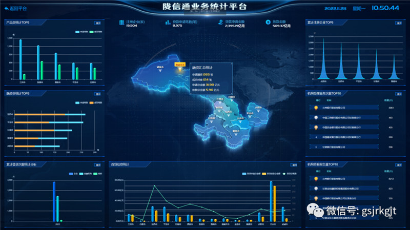 新平台页面采用分屏展示的模式,设置了五大特殊服务专区:绿色金融服务专区、抗击疫情金融专区、金融助力乡村振兴专区、专精特新服务专区、企业服务专区,增加金融产品、金融机构搜索框,添加业务功能快捷入口,优化企业客户、金融机构客户、政府客户、其他用户的登录窗口,完善首页业务统计功能。